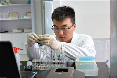 9月3日,實驗人員正在檢測零食樣品中的糖精鈉含量。