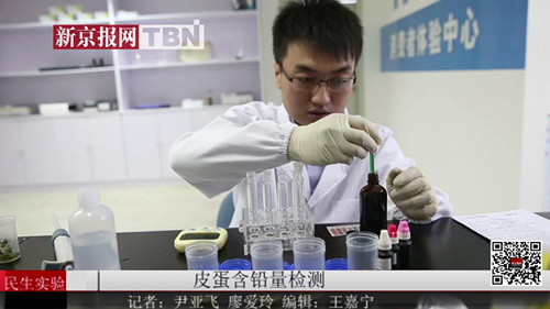 為此新京報記者特邀北京智云達科技有限公司(中國農(nóng)大食品科學(xué)與營養(yǎng)工程學(xué)院食品安全快速檢測研究中心所在地)技術(shù)工程師于勇通過現(xiàn)場實驗,共同為消費者解答心中的疑慮,在食品安全快速檢測網(wǎng)消費者體驗中心對皮蛋中的