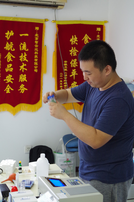 下午由技術(shù)人員現(xiàn)場(chǎng)做快檢實(shí)驗(yàn)操作,涉及肉制品、乳制品。其中主要演示果蔬農(nóng)藥殘留的快速檢測(cè)(農(nóng)殘儀、農(nóng)殘卡);乳制品中三聚氰胺檢測(cè);甲醛的快速檢測(cè);食品中二氧化硫的快速檢測(cè);劣質(zhì)“地溝油”快速檢測(cè);肉制品中瘦肉精快速檢測(cè)等項(xiàng)目。