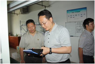隨后,領(lǐng)導(dǎo)們參觀了儀器試劑生產(chǎn)中心,就有關(guān)儀器生產(chǎn)中可能出現(xiàn)的問題,進(jìn)行了詳細(xì)的詢問,在桑總的解答介紹中,于軍司長還親自試用了我司生產(chǎn)的