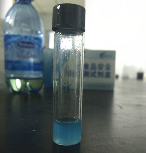 結果判斷:如溶液顯淺黃色,說明油樣酸價≥8mgKOH/g,酸價指標為陽性;溶液顯藍色、淺藍色或綠色,酸價指標為陰性。溶液出現混濁,水分指標為陽性;溶液澄清透明,水分指標為陰性。