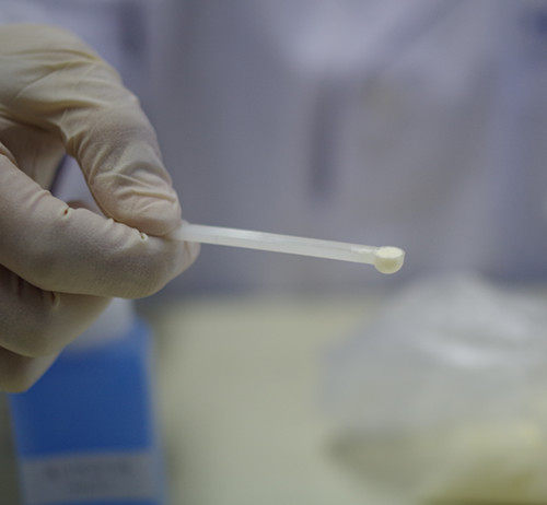 用小勺取奶粉一平勺加入到比色管中。