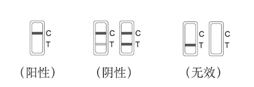 無(wú)效:位置C不顯示出條帶,則無(wú)論位置T顯示出條帶與否,該速測(cè)卡均判為無(wú)效,請(qǐng)重測(cè)。