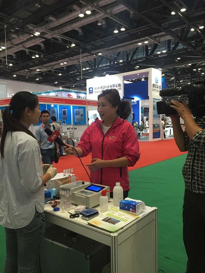北京電視臺的記者被智云達展位前擁擠的人群吸引過來,對公司及儀器很感興趣,并對技術人員進行現場采訪。北京智云達由一支以食品安全檢測、化學分析、計算機軟硬件以及光學儀器開發為主的博士、碩士為核心的高科技人才隊伍組成。現已研發出六大系列食品安全快速檢測產品,取得了多項發明專利,公司長期關注食品安全問題。