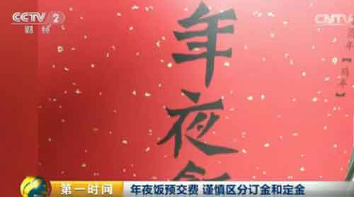 某飯店總經理 馬凱:我們一般都會跟顧客提前約定,如果有急事的情況下,可能不能到店里就餐,在就餐日提前兩三天,到店里辦一下手續,就可以退訂的。此外,消費者協會的工作人員提醒,消費者在預交年夜飯費用時,一定要多留心。