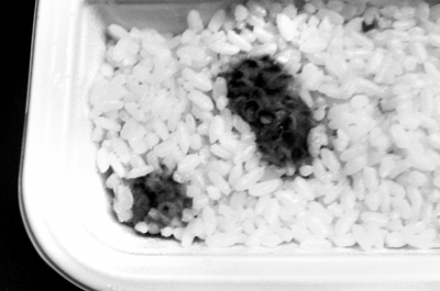 3日下午6點,該列車剛開出長沙站,11號車廂內(nèi)有11位乘客購買了35元一份的紅燒牛肉盒飯。一位姓胡的乘客發(fā)現(xiàn)盒飯有兩處明顯的霉斑。但是盒飯的包裝是2013年10月10日,還有"常溫下貯存,保質(zhì)期90天"的字樣。