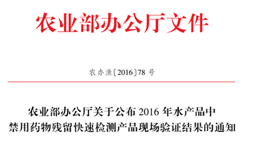 按照《農業(yè)部辦公廳關于開展2016年度水產品中禁用藥物快速檢測產品推薦篩選和驗證工作的通知》(農辦漁〔2016〕57號)要求,農業(yè)部辦公廳組織開展了2016年水產品中禁用藥物殘留快速檢測產品推薦和初審工作,并對15家企業(yè)生產的77種水產品禁用藥物的快檢產品進行了現場驗證。北京智云達參加了呋喃唑酮等呋喃四項代謝物的檢測卡驗證。